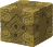 This features a large, golden cube with a unique design on it. It appears to be made of wood and has an intricate pattern that makes it stand out. The cube is placed in the center of the frame, occupying most of the space within the image. This interesting object could potentially be used as a decorative piece or even as a part of a game or puzzle.