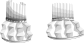 This features two white ceramic sculptures of hair dryers, placed side by side. Each sculpture is a unique representation of the hair dryer design, showcasing their intricate details and craftsmanship. The hair dryers are positioned in such a way that they appear to be floating or hovering above the surface on which they rest. This artistic display creates an interesting visual effect, capturing the viewer's attention with its creative interpretation of everyday objects.