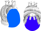 This features two different colored royal headpieces, one blue and the other purple. These unique designs are reminiscent of a glitch clipart collection that was created for a computer game called Glitch. After the game failed commercially, its visual assets were released into the public domain. The entire collection consists of around 2,000 clipart images, and these royal headpieces are just two examples from this extensive collection.