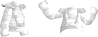 This features three different poses of a person wearing a coat. Each pose is displayed in a separate section, with the first pose on the left side, the second pose in the middle, and the third pose on the right side. The coats are all white, giving them a uniform appearance. In each pose, the person's arms are raised above their head, adding an element of movement to the scene. Overall, it is a creative representation of a person wearing a coat in various poses.