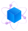 This features a blue cube with purple lines surrounding it, which is the main focus of the picture. This blue and purple design gives off an interesting and unique appearance. The blue cube appears to be floating in space or on a surface, creating a sense of depth and dimension. The overall composition of the image is visually appealing and captivating.