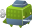 This features a green toy cube with yellow eyes, which is designed in the shape of a mailman. It appears to be an animated or cartoon-like representation of a mailman, giving it a playful and whimsical appearance. The toy is wearing a blue outfit, adding more detail and character to its design. Overall, this unique and creative toy captures the essence of a mailman in a fun and imaginative way.