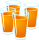 This features a group of four orange glasses, each filled with the same yellow liquid. They are placed on a table or countertop, creating an appealing and inviting display. The glasses are arranged in a way that they appear to be stacked on top of one another, showcasing their vibrant colors and the drink inside them. This arrangement could be used for promotional purposes or simply as a decorative centerpiece for a gathering or event.