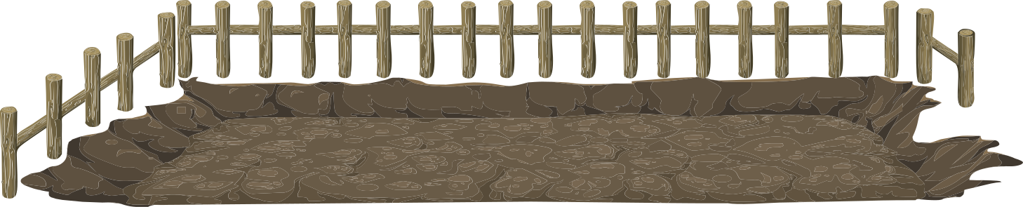 This features a fence with wooden posts, creating an enclosure. Inside the enclosure, there is a dirt area and a small hole in the ground. This scene appears to be part of a computer game or digital artwork, as it has been described as "glitch clipart." The glitch assets were converted into SVG format by Bart from opengameart.org, which can be found at opengameart.org/content/glitch-svgs.