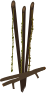 This features a wooden object with four thin sticks protruding from it. These sticks are arranged in an interesting manner, creating a unique visual effect. They appear to be made of wood and have a natural texture that adds character to the scene. The arrangement of these sticks on the wooden surface creates a sense of depth and intrigue, making the image visually appealing.