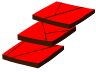 This features a stack of red envelopes, each one slightly smaller than the previous one. There are five envelopes in total, with the largest one on top and the smallest one at the bottom. The envelopes are arranged in a way that they appear to be sitting on top of each other, creating an interesting visual effect. This arrangement could be used for various purposes such as decoration or storage.
