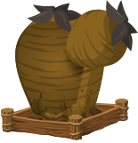 This features a cartoonish illustration of an apple, which is depicted as a wooden object with a hole in the center. This whimsical apple design appears to be made from sticks and branches, giving it a unique and creative appearance. The apple's shape resembles that of a traditional apple, but its materials and craftsmanship give it an artistic twist.