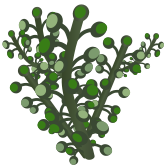 This features a close-up of a green plant with many small, round leaves. These leaves are scattered throughout the plant and vary in size, creating an interesting visual effect. The plant appears to be growing from a central stem or branch, giving it a unique and natural appearance. Overall, the image captures the beauty and intricacy of this particular type of greenery.