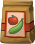 This features a brown bag with an apple and a pepper on it. The apple is located towards the left side of the bag, while the pepper is situated more towards the center. The bag appears to be made from paper or fabric, giving it a rustic look. The overall scene gives off a vintage feel, possibly reminiscent of an old-fashioned advertisement for produce.