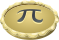 This features a golden circle with a large pi symbol in the center. The pi symbol is surrounded by a decorative border, giving it an elegant appearance. The circle itself has a slightly shiny texture, adding to its visual appeal. This design could be used for various purposes such as jewelry or other decorative items.