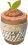 This features a small, brown ceramic vase with a green leaf on top. Inside the vase is a mixture of sand and soil, giving it an appearance similar to a plant pot. The combination of the brown vase and the green leaf creates a visually appealing contrast in colors. This unique design could be used as a decorative piece or even for growing small plants.