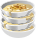 This features a stack of white bowls filled with food, likely oatmeal or gruel. There are six bowls in total, each varying slightly in size and positioned on top of one another. The bowls are placed close together, creating an appealing presentation of the dish. The arrangement suggests that this could be a breakfast or snack option for someone who enjoys oatmeal or similar foods.