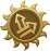 This features a sun-shaped emblem with an arrow pointing upwards. This symbol is likely used to represent the concept of moving forward or progressing in some way. The sun itself appears to be made of gold, giving it a warm and inviting appearance. The arrow on the sun points towards the top, suggesting that the direction of movement is upward. Overall, this emblem conveys a sense of optimism and positive energy.