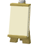 This features a wooden sign with a white board attached to it. The sign is placed on a wooden stand, which has four legs supporting it. The stand appears to be made of wood and is designed to hold the sign securely in place. The overall appearance of the sign suggests that it could be used for various purposes such as advertising or providing information about an event or location.