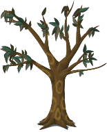 This features a tree with no leaves, giving it an empty and barren appearance. It is depicted in a cartoon-like style, which adds to its whimsical nature. The tree has a large trunk, and the branches are spread out, creating a sense of depth and dimension. This unique tree design could be used for various purposes such as decoration or even as part of an educational project on plant life cycles.