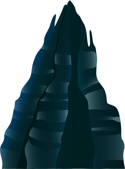 This features a large, dark mountain with a jagged and uneven shape. It appears to be an artistic representation of the mountain rather than a real-life photograph. The mountain's shadow is cast on its side, creating a striking contrast against the black background. This unique visual effect adds depth and intrigue to the scene, making it stand out as a captivating piece of artwork.