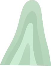This features a green mountain with a wavy, curved shape. It appears to be an artistic representation of the mountain, possibly from a video game or other digital source. The mountain's unique design and color make it stand out as a visually striking element in the scene.