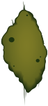 This features a green leaf with spots on it, which is placed against a light brown background. The leaf appears to be in the shape of a mushroom and has a slightly distorted appearance. It seems to be an artistic representation or a symbolic depiction rather than a real-life object. The leaf's unique design and color combination make it stand out against its surroundings, creating an interesting visual contrast between the green leaf and the light brown background.