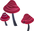 This features a group of four red mushrooms, each with different shapes and sizes. They are arranged in a row, standing upright on the ground. These whimsical mushroom illustrations have been created using glitch clipart, which is a collection of visual assets from the failed computer game Glitch. The game's assets were released into the public domain, allowing artists and designers to use them for their projects. The four red mushrooms in this image are an example of how these assets can be utilized creatively.