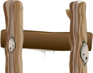 This features a wooden fence with two posts, one on the left and another on the right. Both of these posts have a rope tied around them, creating an interesting visual effect. The ropes are tied in such a way that they appear to be hanging from the posts, giving the impression of a bridge or a makeshift structure. This unique design adds character to the wooden fence and creates an intriguing focal point for viewers.