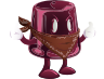This features a cartoon character, possibly a candy bar or a donut, wearing a bandana and holding a gun. This unique design gives the impression of a playful and fun atmosphere. The character is standing in front of a white background, which further emphasizes its presence in the scene. The combination of the bandana and the gun adds an element of intrigue to this cartoon figure, making it stand out as a creative and engaging piece of artwork.