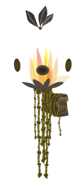 This features a unique and artistic design that combines elements of nature with an industrial setting. A large, intricately crafted metal sculpture is the focal point of the scene, adorned with various chains and beads. This sculpture appears to be inspired by the natural world, as it incorporates elements such as a fire, leaves, and flowers into its design. The overall effect creates an interesting blend of organic and industrial forms that captures the viewer's attention.