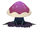 This features a purple mushroom with a black stem, sitting in the grass. It appears to be an illustration or cartoon-like drawing of a mushroom, giving it a whimsical and playful appearance. The mushroom is positioned on top of a patch of green grass, which adds a natural touch to the scene. Overall, the image conveys a sense of fun and creativity through its unique portrayal of a common household object.
