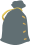This features a green coat with gold buttons, which is hanging from a hook. The coat has a unique design and appears to be made of fabric. It seems to be an old-fashioned style garment that could have been worn in the past. The coat's color scheme consists of a combination of green and gold, making it visually appealing and eye-catching.