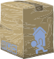 This features a cardboard box with a cartoon character on it. The character is depicted as a man carrying a large box, possibly moving or transporting items. The box itself has a blue house design on it, adding to the overall visual appeal of the scene. This creative and playful representation of a common task can be appreciated by those who enjoy cartoons or comic-like illustrations.