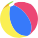 This features a blue, yellow and red circle with a white background. The circle is divided into three sections, each featuring different colors: the left section is blue, the middle section is yellow, and the right section is red. This colorful design gives the impression of a beach ball or a sports ball. The circle appears to be a part of an artistic composition, possibly representing a glitch clipart from a computer game called Glitch.