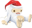 This features a cartoon character wearing a Santa hat and sitting on the ground. It appears to be a cute, anthropomorphic creature with a playful expression. The character is positioned in the center of the scene, occupying most of the frame. The Santa hat adds a festive touch to the overall appearance of the image.