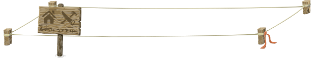 This features a rope tied to two wooden posts, creating an X shape. In the middle of this structure is a sign that reads "X marks the spot." This unique setup could be used for various purposes such as marking a specific location or providing directions. The overall scene appears to be outdoors and possibly in a desert-like environment, given the sandy appearance of the ground.
