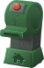 This features a green toy parking meter, which is an object commonly found on streets for regulating the time of parked vehicles. This particular toy parking meter has a red button in the middle and appears to be made from plastic. It is placed against a white background, making it stand out prominently in the scene. The toy parking meter's design suggests that it could be part of a collection or an artistic project inspired by the glitch game, as it has been converted into an SVG format for use in various projects.