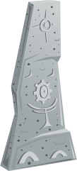 This features a large, intricately carved stone block with various designs on it. It appears to be an artistic piece or possibly a decorative element for a building or outdoor space. The stone is grey in color and has a unique shape that makes it stand out. The design elements on the stone include circles and other patterns, which add visual interest and depth to its appearance. Overall, the image showcases a beautifully crafted piece of art made from natural materials.