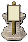 This features a small, stone pedestal with a sign on top of it. The sign is placed in the center of the pedestal and appears to be blank or unoccupied at the moment. The overall design of the pedestal gives off an old-fashioned vibe, which adds character to the scene.