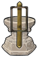 This features a large stone bowl with a gold handle, sitting on top of a pedestal. The bowl is positioned in the center of the scene and appears to be made of marble or similar material. The gold handle adds an elegant touch to the overall design of the piece. The pedestal beneath the bowl provides stability and elevates it from the ground, making it an eye-catching focal point for any setting.