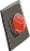 This features a red button with a white background. It is placed on top of a brown book, which appears to be a part of a collection. The button and the book are positioned in such a way that they create an interesting visual contrast between the two objects. The red button stands out against the brown book, drawing attention to it as the focal point of the image.