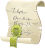 This features a piece of paper with writing on it, possibly a letter or a note. A green strap is attached to the top of the paper, adding a unique touch to the presentation. The paper appears to be old and worn, giving it an antique appearance. The combination of the writing and the green strap creates a visually interesting scene that captures attention.