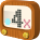 This features a small television screen with a game on it. The game appears to be a simple puzzle, as there are four black squares and one blue square displayed on the screen. A red cross is placed over each of the black squares, indicating that they need to be filled in with the correct color. The overall appearance of the image suggests an old-fashioned television set, possibly from the 1980s or earlier.