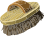 This features a brown and white broom with a wooden handle. It is placed on top of a white background, making it stand out prominently in the scene. The broom has a straw-like appearance, giving it a natural texture that contrasts well against the clean white surface. This simple yet effective design makes for an appealing and functional tool for cleaning purposes.