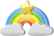 This features a cloudy sky with two clouds, one on the left and another on the right. In between these clouds is an iconic symbol of a rainbow, which adds a touch of color to the scene. Above the rainbow, there is a star that serves as a decorative element in the picture. The overall composition creates a sense of depth and contrasts the vibrant colors of the rainbow with the more subdued tones of the cloudy sky.