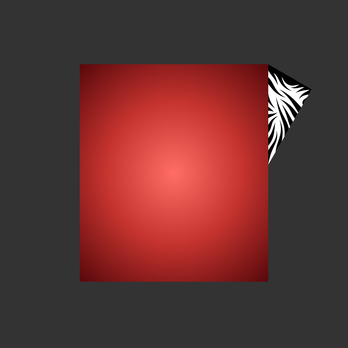 This features a red square with a zebra pattern on the right side. The square is positioned in the center of the scene, and it appears to be the main focus of the image. The zebra pattern adds an interesting visual element to the otherwise solid red background.
