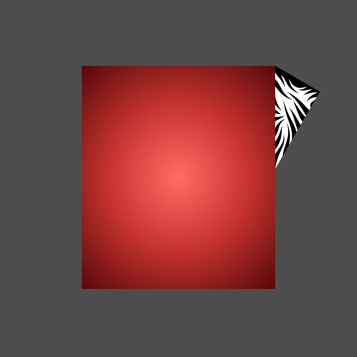 This features a square with a red background, which is slightly tinted orange. The square has a white zebra pattern on it, giving the appearance of a red and white checkered pattern. This unique design creates an interesting contrast between the red and white colors.