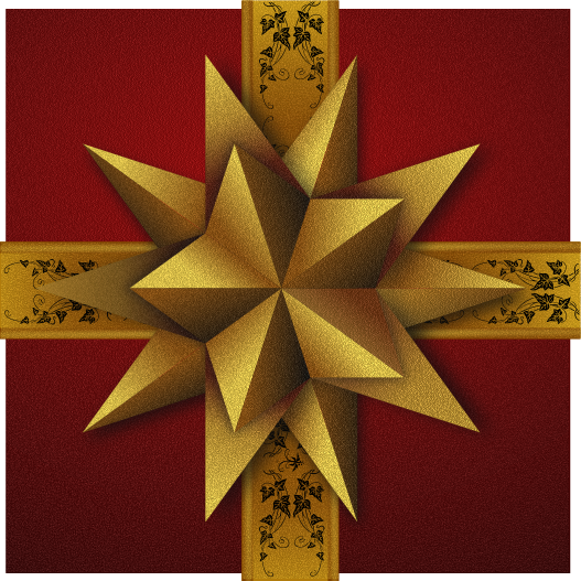 This features a large, intricate gold star made of paper. It is placed on top of a red background and appears to be the centerpiece of a gift box. The star has a three-dimensional appearance, giving it an eye-catching look. The paper star is surrounded by a decorative border that adds to its visual appeal. This artistic design could be used for various purposes such as wrapping gifts or creating festive decorations during the holiday season.