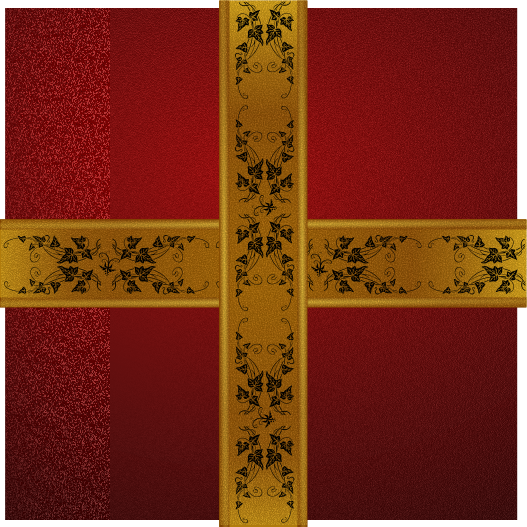 This features a large, ornate cross made of gold and red colors. It is set against a backdrop of a red cloth with intricate designs on it. The cross has a golden frame that adds to its elegance. The overall appearance of the image gives off a festive and religious vibe, making it an ideal representation of a Christmas gift box.