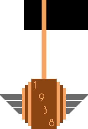 This features a unique art decoration that has been designed to resemble an old clock. It is shaped like a rectangle and has the year 1938 carved into it, giving it a vintage appearance. On each side of the rectangle, there are two grey wings placed, adding an interesting visual element to the design. The combination of the clock-like shape and the wings creates a distinctive piece that stands out as art decoration.