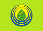 This features a green and yellow logo on a blue background. The logo is shaped like a circle with a leaf inside, giving it an appealing and unique appearance. The color scheme of the logo consists of bright green for the leaf and a lighter shade of yellow for the surrounding area. This eye-catching design makes the logo stand out against its blue backdrop, creating a visually striking image that can be used in various contexts.
