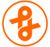This features a circular orange sign with an outline, resembling two ribbons placed upon each other. These ribbons are also orange in color and appear to be the main focus of the sign. The overall design gives off a sense of unity or connection between the two elements within the sign.