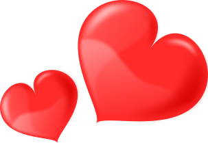This features two red hearts, one larger than the other. They are both glossy and appear to be floating in a white background. The larger heart is positioned towards the left side of the image while the smaller heart is located more towards the center. These hearts seem to be the main focus of the image, creating an eye-catching display.