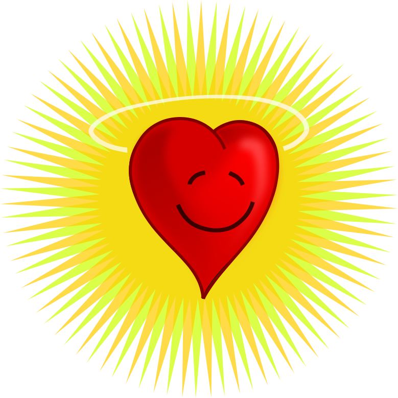 This features a red heart with a yellow halo above it, giving the impression of a smiling face. The heart is positioned in the center of the scene and appears to be the main focus of the image. The combination of the bright colors and the halo creates an overall cheerful atmosphere, making the heart appear warm and inviting.